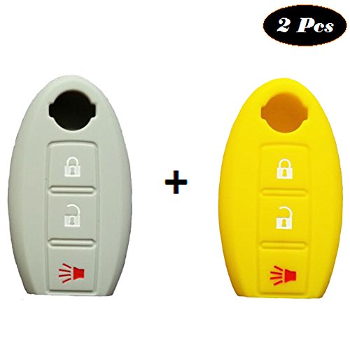 WELLSKEY Gray + Yellow Silicone Car Key Cases Cover Holder Replacement 3 Buttons For Nissan Almera / Altima / GT-R / Maxima / Murano / Sentra / Teana / Tiida / Juke / Qashqai / X-trail- Pack of 2 pcs