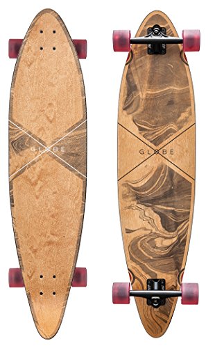 Features: Komplett Board Alloverprint Lä nge x Breite: 41.25 x 9.75 ' ' Achsenbreite: 180 mm Rollen Durchmesser: 65 mm Rollen Hä rtegrad: 83 a Long pintail shape with a kicktail HerstellerFarbe: marbled black Material: SonstigesFeature