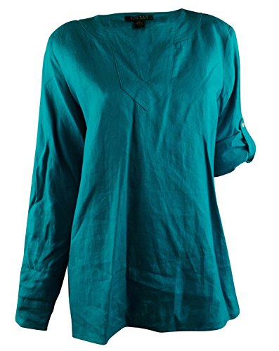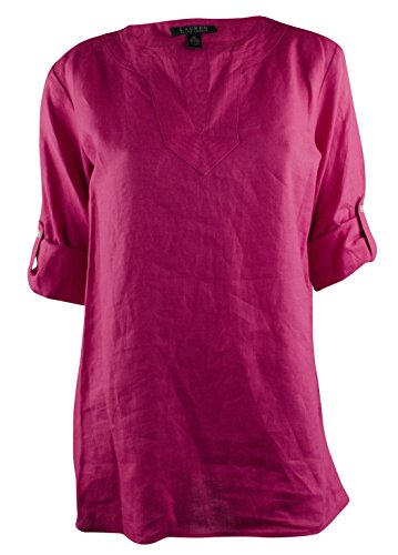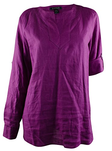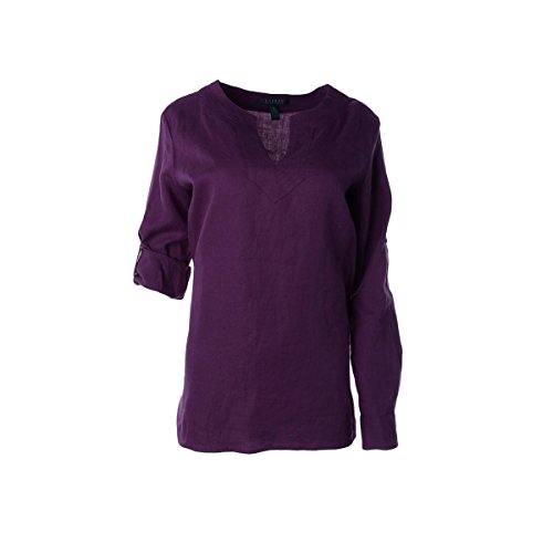 100% Linen; Split neckline with tonal channel stitching at the placket; Roll-tab-Long sleeves with buttoned tabs at the elbows; Uneven vented hem; Machine washable; Imported