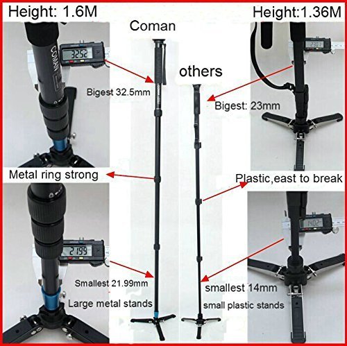 The DX327CQ1 is a lightweight fluid monopod with a specially adapted Q1video head attached. It has an innovative fluid pan cartridge incorporated into the monopod base that gives you an incredibly smooth panning action. Great compactness while folded thanks to the three retractable feet. The patented fluid monopod features wider platform for HDSLR bodies and the sliding plate travels to balance the latest interchangeable lens cameras. The fluid monopod ensures smooth shots and fine control with up to 20kg of equipment. Faster, easier and safer to use: the side lock system allows the camera and sliding QR plate to click quickly into the head from above, instead of needing to be aligned and slid in from the back. No secondary safety lock is necessary. The side lock system also makes it quicker and simpler to lift the camera out of the head from above. The DX327CQ1 has one Easy Link 3/8'' connector to allow an external monitor or other accessory equipment to be fitted. Compared with Benro Monopod ST1 and others on the market, there is a few fixtures made it outstanding: For Stand, It is the only one on the market that has 1,With automatic lock button; 2,Metal Stand, especially full metal foot; 3, Metal feet is 135mm long. It is the longest on the market (Benro ST1 is 110mm others are about 118mm) That made the most reliable and stable stand for you cameras. The Monpod is heavy duty and long range but still keep light weight. That make you easy to carry to everywhere and always ready for shooting, ie moving objects, sport events etc. The Monopod is a 4 Section Mono Pod With a 1/4 inch or 3/8 inch two heads camera mount that is suitable for most DSLRs and compact cameras, the 327A features a wrist strap, ergonomic handle, plus hydraulic Universal Three feet Support Stand. Model NO. : DX-327C(Carbon Fibre) Compatible Brand : All Section : 4 Max.Diameter : 32.5mm Min.Diameter : 18mm Max.Height : 1664mm Fioded : 554mm Weight : 0.75kg Max.Load : 16kg