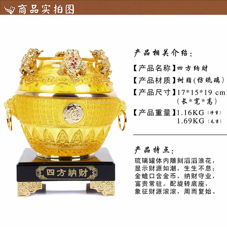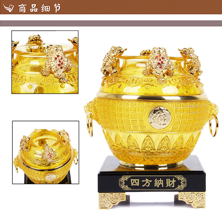 四方纳财聚宝盆摆件招财金蟾摆件家居装饰品风水摆件创意工艺礼品