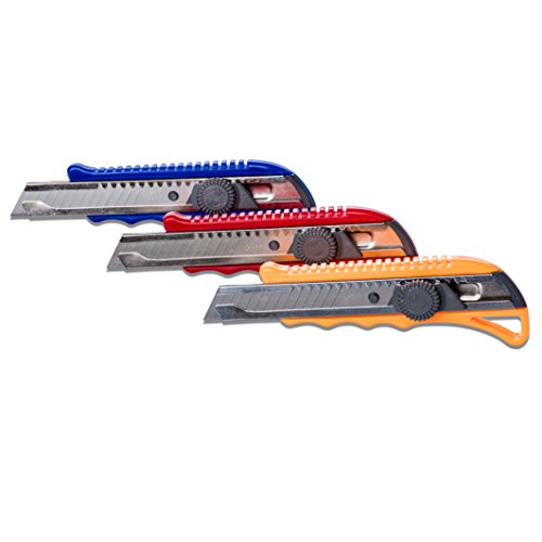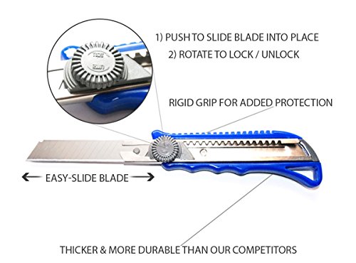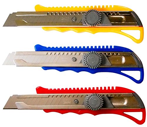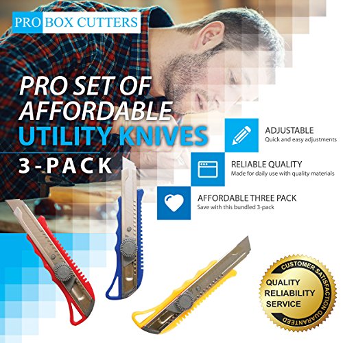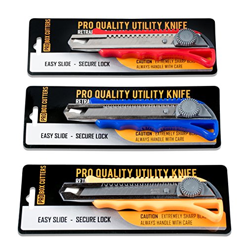 Pro Quality Utility Knife Box Cutter Set (3 Pack) - Heavy Duty Industrial Strength Cutters - Retractable Razor Blades