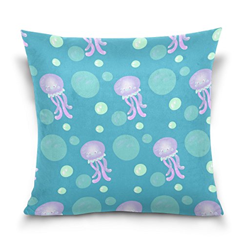 1.Pattern: Jellyfish Pattern Printed Cotton Velvet Custom Throw Pillow Case. 2.Material:Made of 50% Cotton,50% Polyester,Double-sided Printing. 3.Unique design:Hidden Zipper closure on bottom for easy removal of insert. 4.High-points:Soft to touch, easy to wash and dry fast. 5.Using Place:Wide applications,perfect for home decoration(bed,couch,sofa,or chair),car decoration,hotel,cafe decor,and everyday use as it will create a warm and holiday mood wherever they are placed. Great gift idea for friends,a lover,boyfriend,girlfriend,husband or a wife.