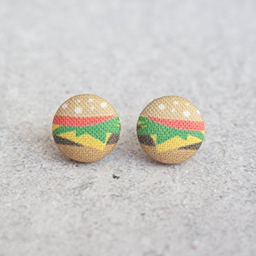 -. Title : Burger Fabric Button Earrings