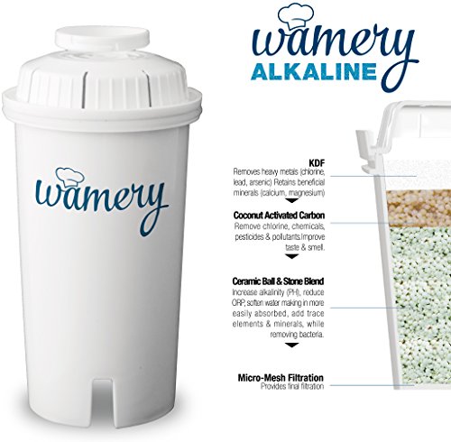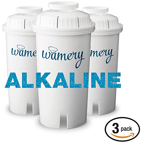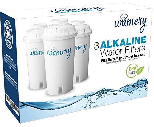 Water Filter Replacement 3-Pack. Fits Wamery and Brita Pitcher. Ionizer and Purifier Cartridge system. NSF ANSI Certified. Reduce Chloride, hard metals from kitchen faucet. (ALKALINE: Ceramic)