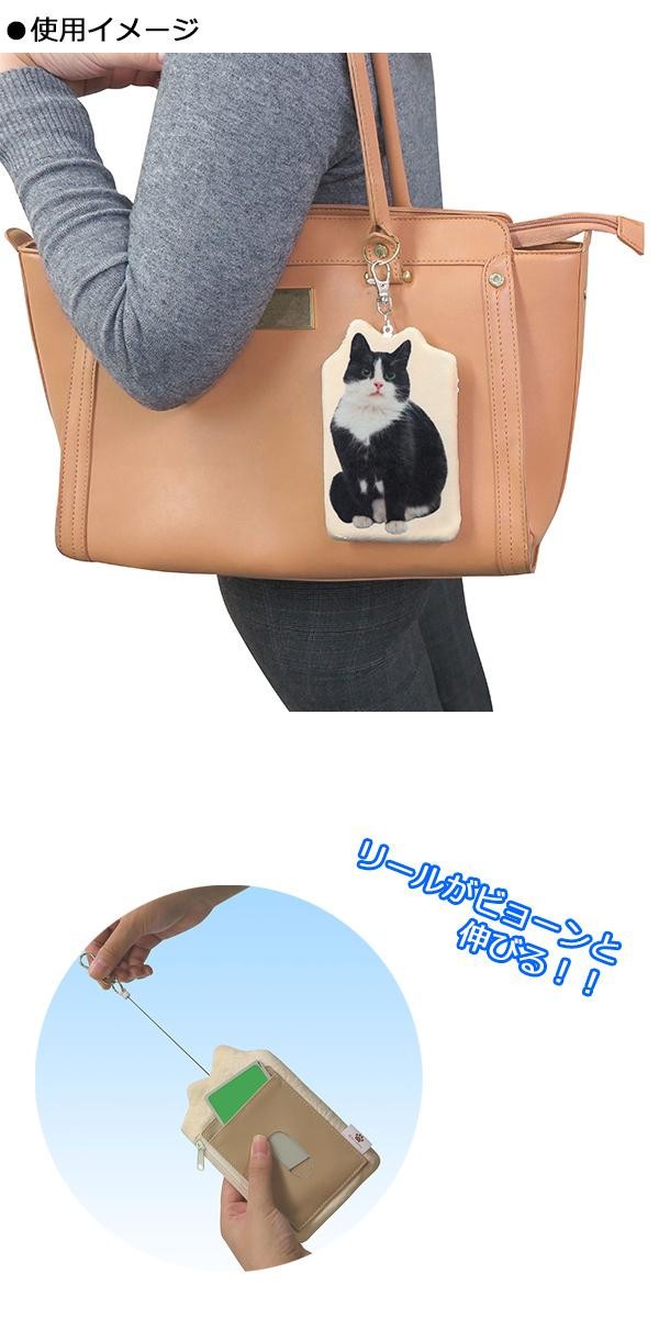 | リールがビヨーンと伸びて改札に楽々タッチ!!カードポケットだけではなく、ファスナーポケットが付いているので小物も入れられます。カバンに付けられるフックも付いています。 |