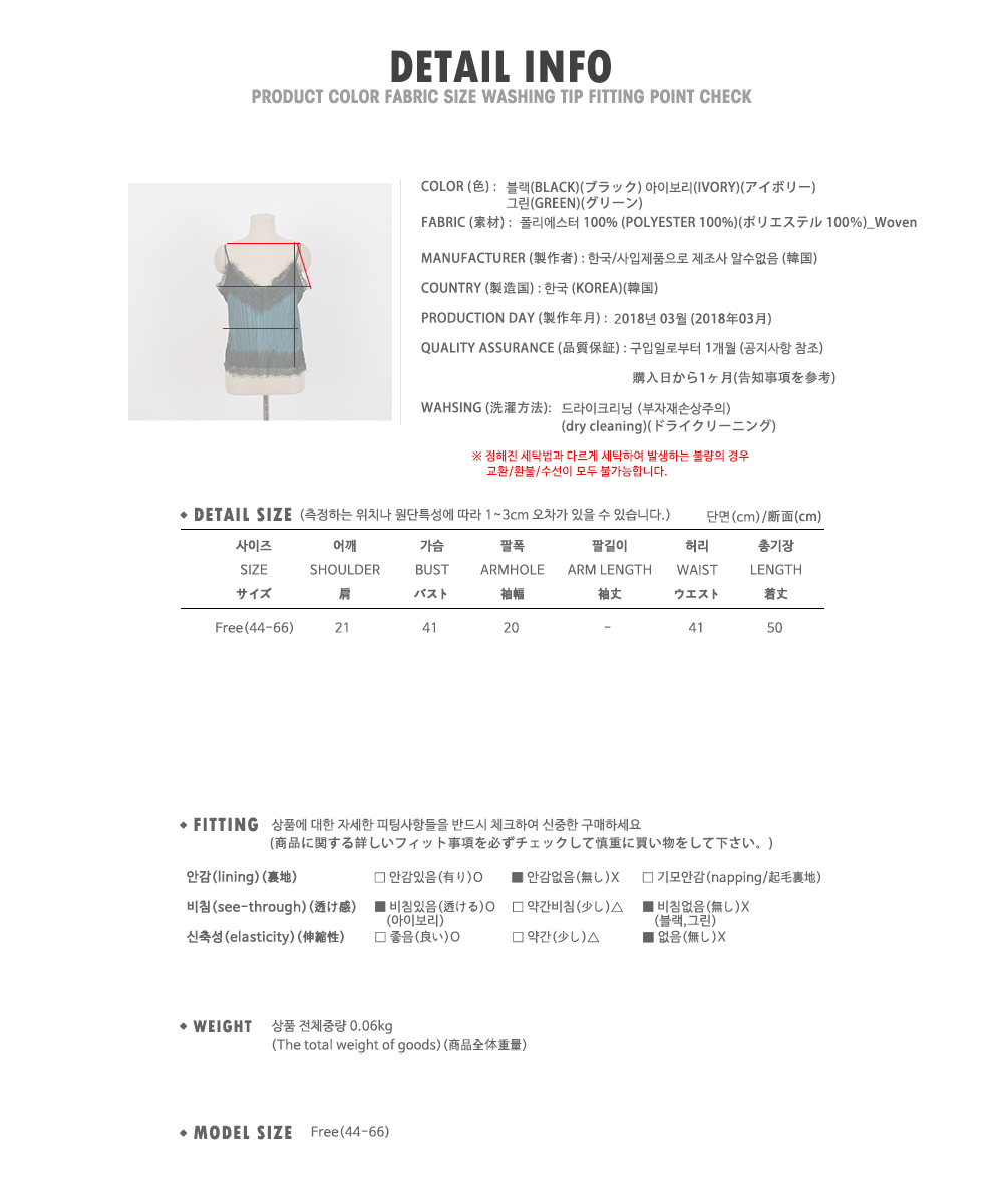 꿈처럼레이스탑 '포인트룩을 완성시켜주는 레이스 슬리브리스~' 시즌에 구애없이 착용하기 좋은 size tip모델착용 사이즈는 Free(44-66)입니다 정확한 사이즈는 하단의 size표를 꼭! 참고해주세요 야외(실내)촬영 특성상 실제 상품과 컬러차이가 있을 수 있습니다. 정확한 컬러는 하단의 디테일컷을 참고해주세요. |