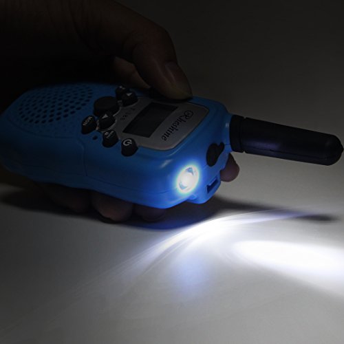 Multi-Channel and FRS/GMRS -Supporting 22 channel PMR system to transmit and receive icons. FRS/GMRS 2-way radios, if you set the same channel and same CTCSS, you can link up more than 2 walkie talikes, which can bring great fun for the whole family.LCD display and Built-in Led torch is very convenient for kids use in weak light environment.