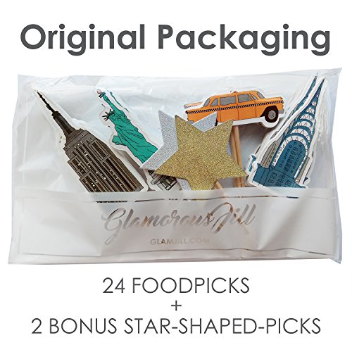 - Each package includes 26 pcs of cupcake toppers: New York City Theme- 4 styles in total (6 pcs each), plus 1 piece of Double sided Golden Star-shaped pick and 1 piece of Double sided Silver Star-shaped pick