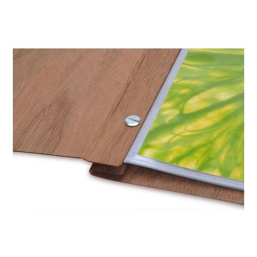 The Woodland Express Book (Walnut Finish) from Pina Zangaro provides a professional-looking way to display your photos and artwork. Each page holds photos and artwork up to 11 X 8.5". The wood finish gives your portfolio a stylish look and the laminate offers protection against dust, dirt and moisture. The book comes with 10 polypropylene sheets. Out of the box, the book can hold 15 pages. The book's screwpost design you can easily add and rearrange sheets, allowing you to customize your book to suit your needs.Feature