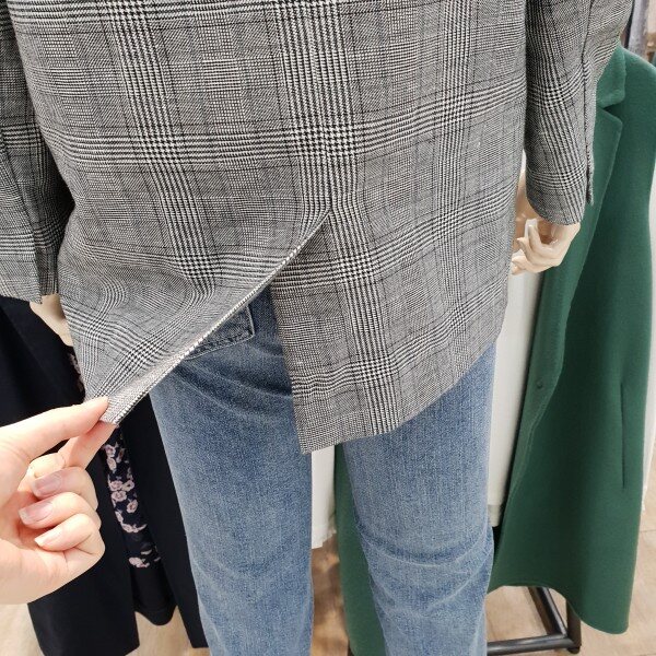 모던하고 세련된무드의 체크 린넨자켓입니다