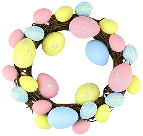 Northlight 10" Pastel Pink, Yellow and Blue Floral Stem Easter Egg Spring Grapevine Wreath