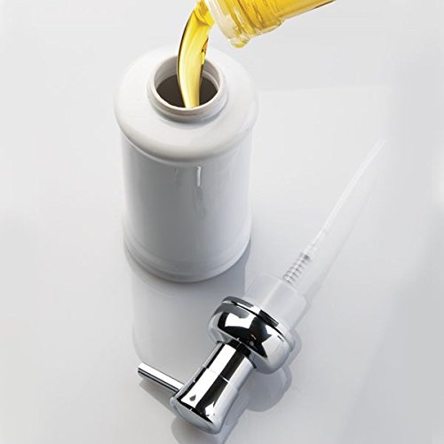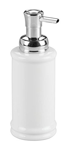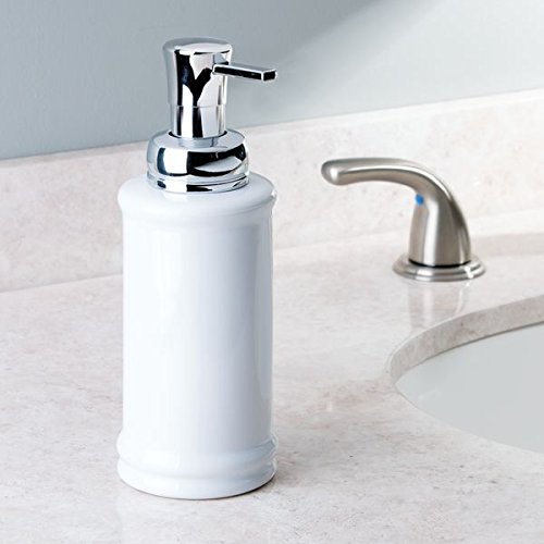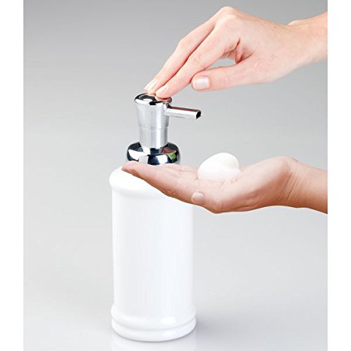 mDesign Foaming Soap Ceramic Dispenser Pump Bottle for Bathroom Vanities or Kitchen Sink, Countertops - Pack of 2, White/Chrome