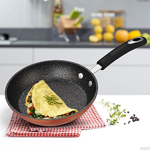 Cate-Maker Frying Pan with Induction bottom is formed with 3-layer nonstick. Coated with GREBLON C3 non-stick interior which is from Germany and whiford exterior which is from US