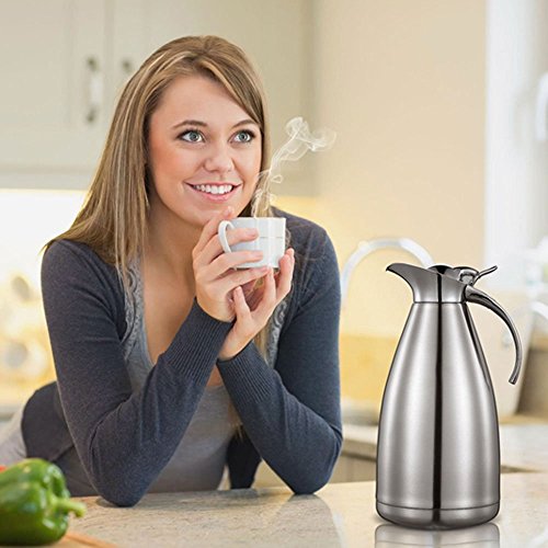 COOX 2.0L Deluxe Stainless Steel Thermal Carafe Pitcher - Unbreakable Double Wall Vacuum Insulated Jug for Coffee or Hot & Cold Drinks