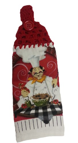 Handcrafted Hot Red Crochet Topped Pasta Chef Kitchen Towel