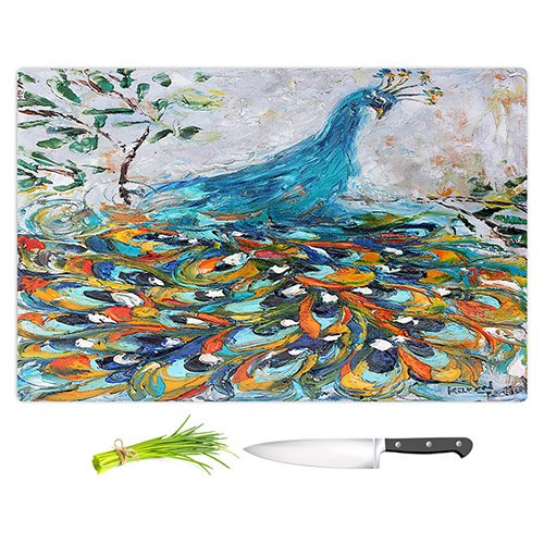 DiaNoche Designs CB-KarenTarltonFabulousPeacock2 Karen Tarlton-Fabulous Peacock Cutting Boards from, Large 15" x 11"