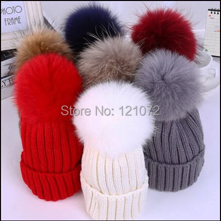 | [해외]14-15 센치메터 다채로운 너구리 모피 기억할만한 우아한 모피 공 니트 모직 모자 모자 겨울 비니 & skullies 여성 진짜 모피 치어 리딩 |