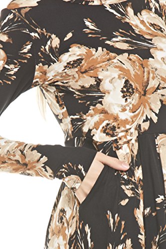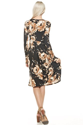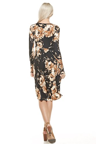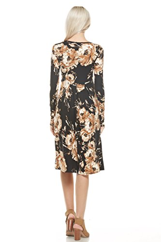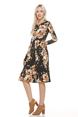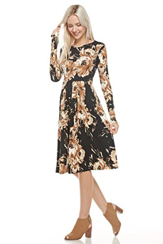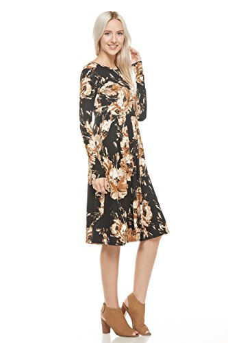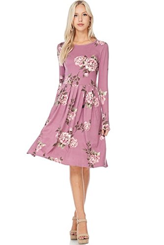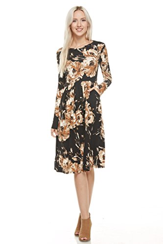 Long Sleeve Dress with Round Collar and pockets. Dress has fitted sleeves, pleats at the waist, loose on hips, and legs. Dress measures from 42.5 to 44 inches long. Model is 5"9 wearing a size small.