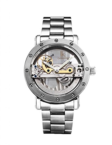 -. Feature : GuTe Steampunk Mechanical Watch Unisex Adult Style / Minimalist Mechanical Watch Steampunk Designs / Silver Tone Bezel with Slotted Screw Stainless Steel Watchband fold over clasper / ?Power by Shaking the Watch made the Rotor automatically wind up & Unscrew the Crown and downward Turns for Set Time / Made by IK colouring High Quality Mechanical Watches