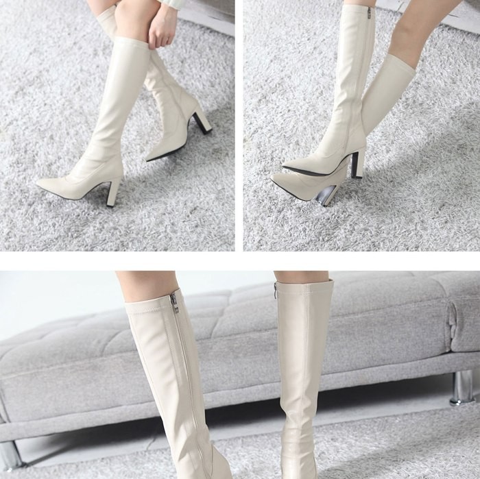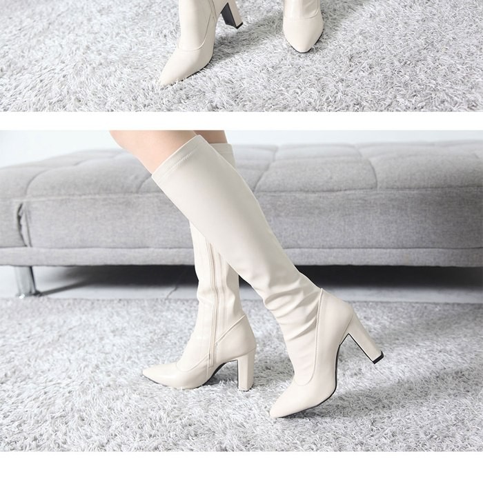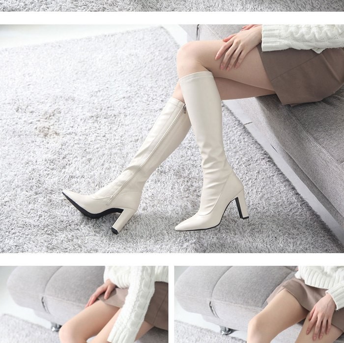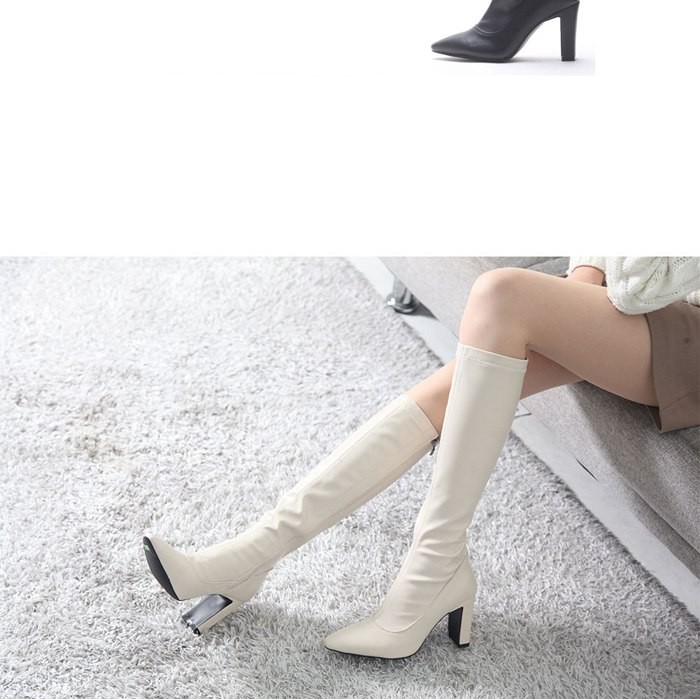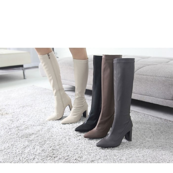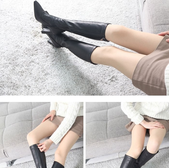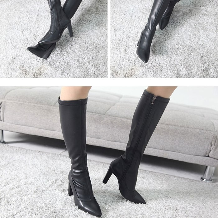 商品名:ロングブーツ レディース ポインテッドトゥ 太ヒール 2017 秋冬 ファッション 靴 婦人靴