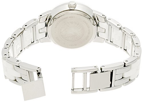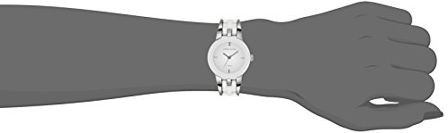 Silver-tone watch featuring white dial with diamond at 12 o'clock and bracelet with white ceramic center links