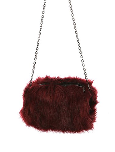 (Variety Gift Shop Fashion Jewelry)/Accessories/Handbags/DIRECT FROM USA/Burgundy Faux Fur Hand Warmer Clutch Crossbody Shoulder Handbag ( EKB19616BRA)