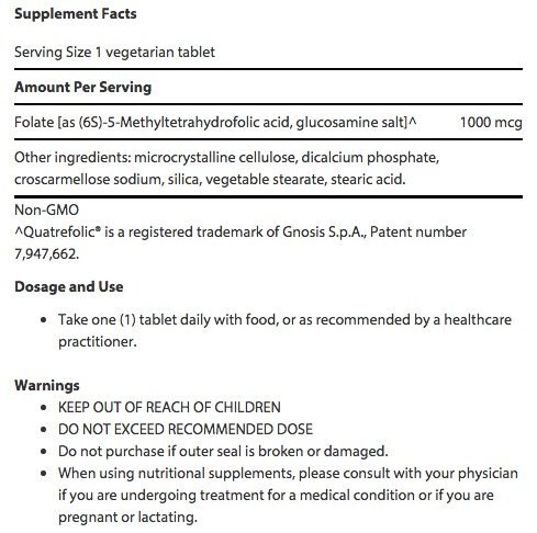 Optimized Folate (L-Methylfolate), 1000 mcg, 100 vegetarian TABLETS. Optimized Folate (L-Methylfolate)1000 mcg, 100 vegetarian TABLETS. Folate is involved in neurotransmitter synthesis and critical enzymatic reactions throughout the body. By depleting excess homocysteine, folate benefits cardiovascular health and nervous system function. Those who take ordinary folic acid supplements, however, may not be experiencing its full spectrum of effects. This is because once ingested, not everyone converts folate to its biologically active form called 5-methyltetrahydrofolate (5-MTHF). Research shows that in a large proportion of the population, genetic enzyme deficiencies prevent the conversion of folate to 5-MTHF, leaving many vulnerable to low blood folate levels (and higher than desired homocysteine). A more useful approach is to take the bioactive folate 5-MTHF directly, which has been declassified as a drug and is now available as a dietary supplement. 5-MTHF has been shown to dramatically raise blood serum folate levels compared with folic acid supplementation. This bioactive folate is up to seven times more bioavailable than folic acid. This greater bioavailability is especially important in people who have a genetic enzyme deficiency since it requires no conversion to become metabolically activeFeature