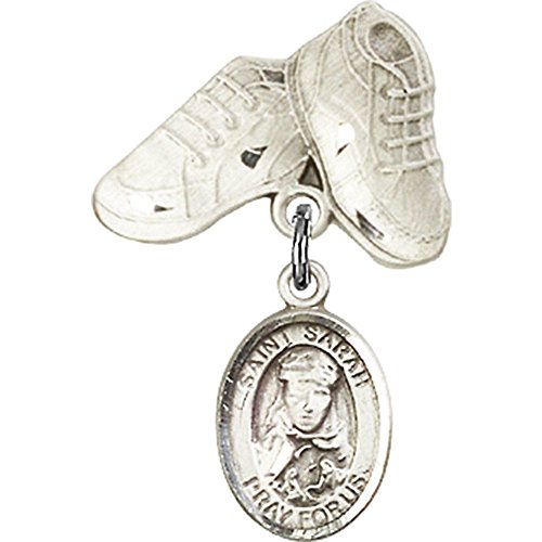 -. Title : Sterling Silver Baby Badge with St. Sarah Charm and Baby Boots Pin 1 X 5/8 inches
