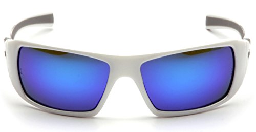 Pyramex Goliath Safety Eyewear, White Frame, Ice Blue Mirror Lens