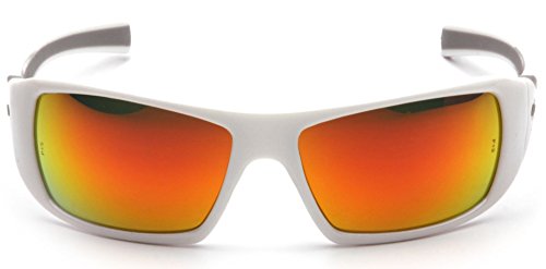 Pyramex Goliath Safety Eyewear, White Frame, Sky Red Mirror Lens
