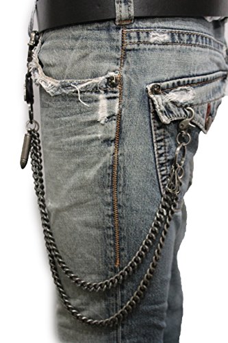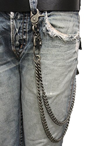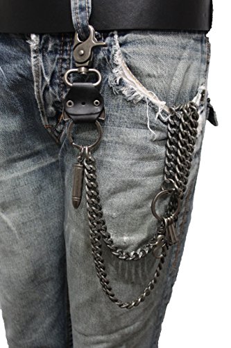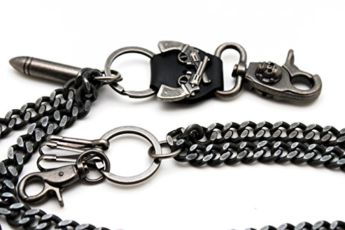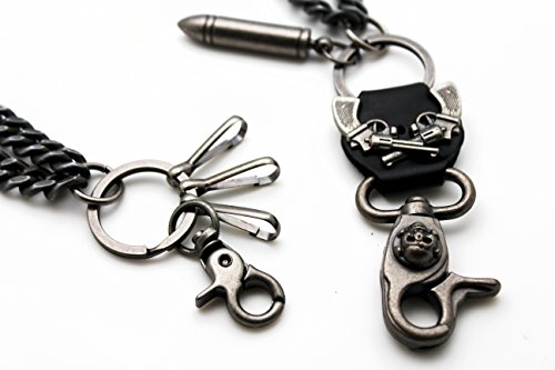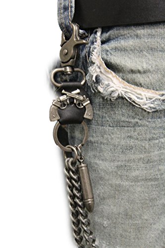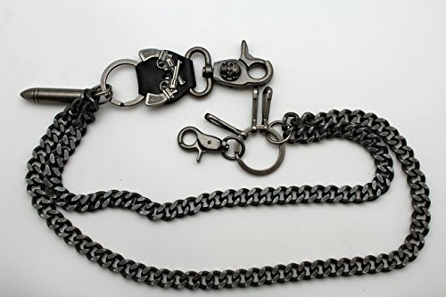 -. Title : TFJ Men Wallet Chain Biker Fashion Metal Jeans Guns Bullets Charm Skull Rusty Silver