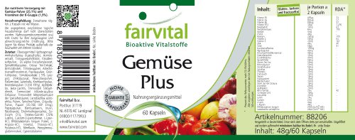 -. Title : Gemüse Plus - 60 Kapseln, vegetarisch - hochwertige Gemüsepulver mit Vitaminen, Mineralstoffen, Enzymen und Pflanzenstoffen