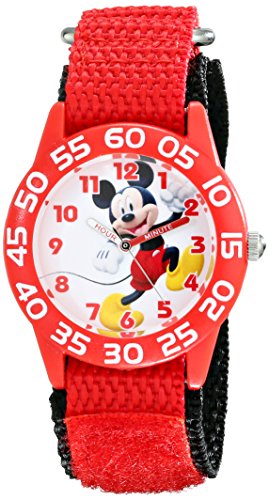 -. Binding : Watch -. Brand : Disney -. Color : Red -. Department : boys -. EAN : 0843231080782 -. Feature : Round Time Teacher Plastic Watch with Disney's Mickey Mouse character on dial. / Meets or exceeds all US Govt requirements and regulations for Children's watches. / Recommended for Ages 3-7 years old. Includes a Time Teacher Punch Out clock for Parents to Teach their Children. / Accurate Japanese Quartz movement, scratch resistant mineral crystal, hook and loop Nylon strap / Water Resistant to 99 feet: withstands rain and splashes of water, but not showering or submersion. / 1 Year Limited Manufacturers Warranty -. Label : Disney-Roll up -. Manufacturer : Disney-Roll up -. Model : W001654 -. MPN : W001654 -. PackageQuantity : 1 -. PartNumber : W001654 -. ProductGroup : Watch -. ProductTypeName : WATCH -. Publisher : Disney-Roll up -. Studio : Disney-Roll up -. Title : Disney Kids' W001654 Mickey Mouse Analog Display Analog Quartz Red Watch -. UPC : 843231080782
