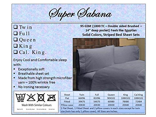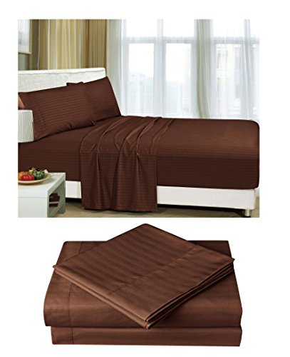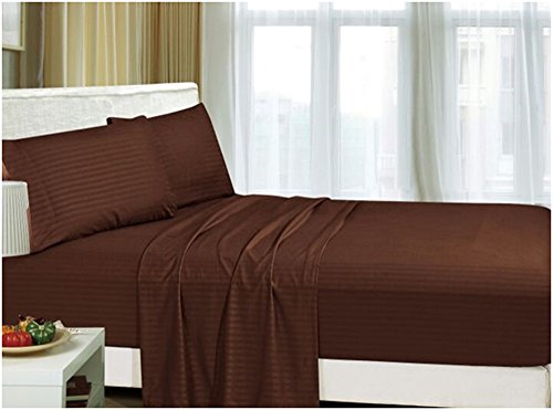 Super Sabanas Solid ColorStriped Bed Sheets - 95 GSM (1800 TC - Double Sided Brushed - 14" Deep Pocket) Feels Like Egyptian Cotton - Exceptionally Soft (Double, COFFEE BROWN)