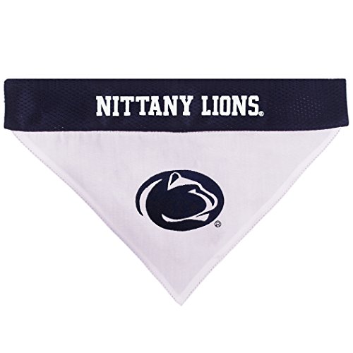 Studio : Pets First Publisher : Pets First Binding : Misc. Product Description Your pet will surely be able to show off his/her team spirit with this unique dual sided COLLEGE DOG BANDANA! It features a screen printed team logo and name on 1 side a embroidered team logo on the other side! Officially licensed and ready for game day! Comfortable 100% poly-cotton keeps it wrinkle free and easy to clean. Great for parties, BBQs, tailgating and even Halloween as a pet costume. SIZING USE: Two available sizes will fit most dogs, including small dogs, medium dogs and large dogs. Please measure your dog before ordering to ensure you get the right fit and avoid any need for a return or exchange. Best fit if used with our matching COLLEGE DOG COLLAR! TEAMS - Available teams include: Alabama Crimson, Arkansas Razorbacks, Arizona State University Sun Devils, Auburn Tigers, Clemson Tigers, Connecticut Huskies, Duke Blue Devils, Florida Gators, Florida State Seminoles, Georgia Bulldogs, Iowa Hawkeyes, Illinois Fighting Illini, Indiana Hoosiers, Iowa State Cyclones, Kansas Jayhawks, Kentucky Wildcats, LSU Tigers, Michigan Wolverines, Miami Hurricanes, Missouri Tigers, Michigan State Spartans, Mississippi State Bulldogs, NC State Wolfpack, Nebraska Cornhuskers, Ohio State Buckeyes, Oklahoma Sooners, Oklahoma State Cowboys, Oregon Ducks, Penn State Nittany Lions, Pittsburgh Panthers, Purdue Boilermakers, South Carolina Gamecocks, Syracuse Orange, Texas AM Aggies, Tennessee Volunteers, Texas Tech Red Raiders, Texas Longhorns, Louisville Cardinals, Mississippi Ole Miss Rebels, USC Trojans, Utah Utes, Virginia Cavaliers, Virginia Tech Hokies and Wisconsin Badgers. Choose your team and click ADD TO CART NOW!. 0