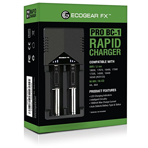 -. Binding : Electronics -. Brand : EcoGear FX -. Feature : Charges Lithium-ion, Ni-MH and Ni-CD Batteries / Intelligent Circuitry Autodetects Battery Type & Status / LED Lights Indicate the Charging Status of Each Battery / Capable of Charging 2 Batteries Simultaneously / Each Battery Slot Monitors and Charges Independently -. Label : EcoGear FX -. Manufacturer : EcoGear FX -. Model : BC-1 -. MPN : ACSBC-1 -. PackageQuantity : 1 -. PartNumber : ACSBC-1 -. ProductGroup : Speakers -. ProductTypeName : BATTERY -. Publisher : EcoGear FX -. Studio : EcoGear FX -. Title : EcoGear FX PRO BC-1 Rapid Battery Charger for 18650 AAA AA Li-Ion/NiMH Batteries