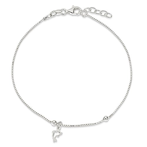 -. Title : .925 Sterling Silver 1.00MM Box Chain with Dolphin Anklet Bracelet, 9 Inches