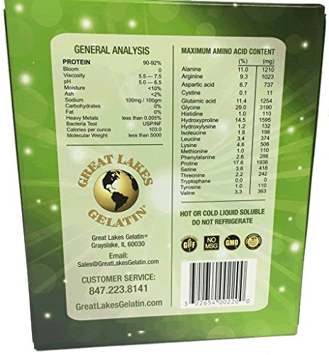 Great Lakes - Pure Unflavored Protein Beef Gelatin Collagen Hydrolysate - 20 Packets. (8.57 oz) 240 grams