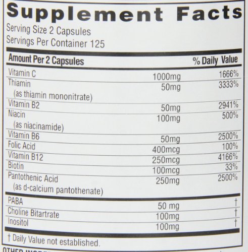 Stress B-Complex Caps contain the B-complex vitamins, including thiamin (vitamin B1), riboflavin (vitamin B2), niacin (vitamin B3), pantothenic acid (vitamin B5), pyridoxine (vitamin B6), biotin, folic acid and cyanocobalamin (vitamin B12), plus vitamin C! The Stress B-Complex formula contributes towards the health of the body’s nerve and blood cells, as well as helping to make DNA, the genetic material in all cells. B vitamins are co-enzymes involved in energy production.Feature