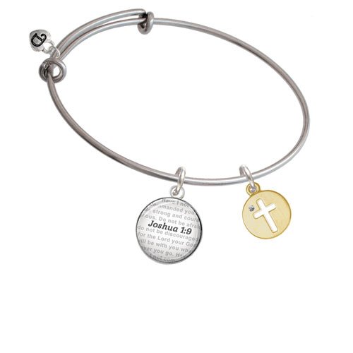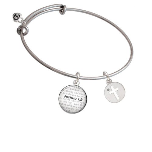-. Binding : Jewelry -. Brand : Delight Jewelry -. Department : womens -. Feature : Silver Tone Cross Silhouette Bible Verse Joshua 1:9 Glass Dome Bangle Bracelet. / Silver Tone Cross Silhouette is approximately 0.63 x 0.51 x 0.09 inches (HxWxD) including loop. Smooth disc with a clear crystal on the front. / 1.7 mm Expandable Bangle Bracelet is approx. 2.5 inches in diameter and can open up to 3.25 inches. / Silver Tone Domed charm is approximately 0.9 x 0.7 x 0.2 inches (HxWxD) including loop. High quality P.R.Inted paper sealed under a glass dome in a metal frame. / "Have I not commanded you? Be strong and courageous. Do not be afraid; do not be discouraged, for the Lord your God will be with you wherever you go." -. Label : Delight and Co. -. Manufacturer : Delight and Co. -. Model : 1610P-BR-CrossDisc-C6365-F2084 -. MPN : 1610P-BR-CrossDisc-C6365-F2084 -. PartNumber : 1610P-BR-CrossDisc-C6365-F2084 -. ProductGroup : Jewelry -. ProductTypeName : FASHIONNECKLACEBRACELETANKLET -. Publisher : Delight and Co. -. Studio : Delight and Co. -. Title : Cross Silhouette - Bible Verse Joshua 1:9 Glass Dome Bangle Bracelet