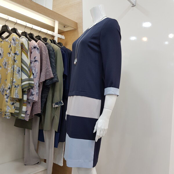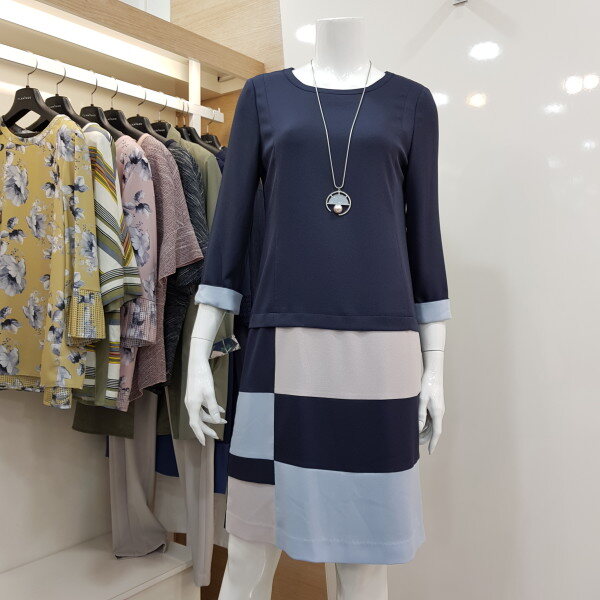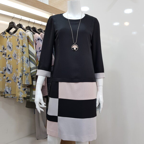 기본 스타일의 원피스로 배색포인트를 주어 세련된 스타일입니다.