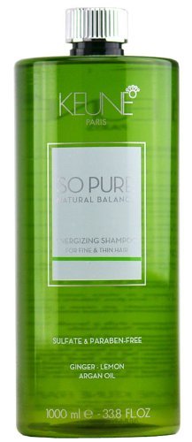 Keune So Pure Natural Balance Energizing Shampoo for Fine and Thin Hair Energizing Shampoo has Red Ginseng and Ginger to stimulate the scalp. Biotin strengthens the hair. Hair appears fuller feels thicker and has more volume. Ginger Lemon Argan Oil. Sulfate and Paraben-Free.