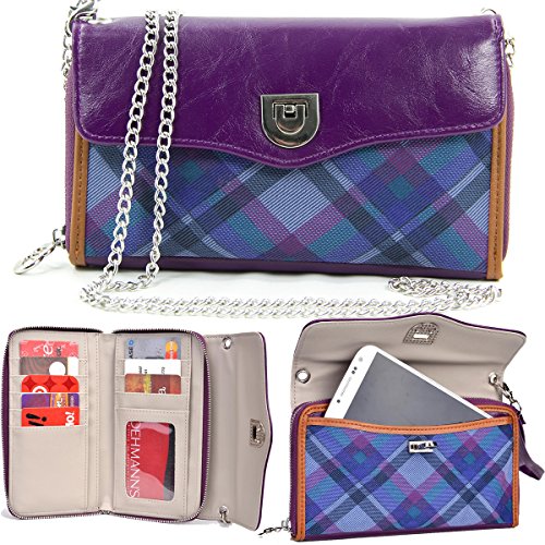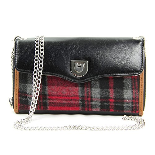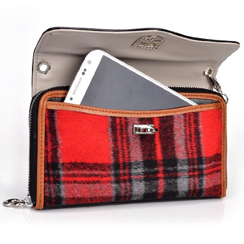 -. Feature : Universal Faux leather wallet phone clutch / Fabric plaid design / Multiple card slots, checkbook holder and ID slot / Removable wrist strap / Internal dimensions: 5.80in x 3.10in x .30in