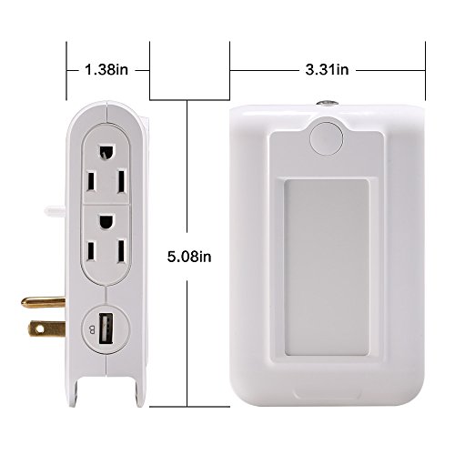 GRDE Wall Mount Charger with 4 AC Outlet Dual USB Charging Ports Dusk to Dawn Sensor LED Night Light and Slot Phone Holder