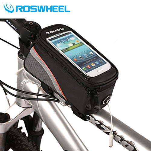 - Feature : Roswheel Waterproof 4.8 , 5.5 Inch Bicycle Mobile Phone Touch Screen Bag Frame Tube Bag More detail about "S" Size 4.2'' , please search SKU081500 in www.banggood.com. Specification: Material : Polyester Color: Black, Red, Blue Size: M 4.8 inch: 18.5*8.5*8.5 cm L 5.5 inch: 19.5*10*9.5 cm Description: Suitable for all type bike. Clear PVC window pouch designed for mobile phone. Touch screen operation smoothly ,Easy access to all functions without removing the case,watching / movies, receiving calls, etc. 360 degree rotation. Designed in the most simple bag with zipper door. Anti-slip leather at the bottom. Waterproof, not 100% water-proof case. It only protects in slightly water-drop or rain. Both sides have the reflective strip for safe riding at night. It has waterproof and inductive touch functions.The transparent PVC window is special for cell phone . Mount it on your bike, will convenient you to check time, map, callings, messages no matter on fine day or rain / day. Package Includes: 1X Bicycle Bag