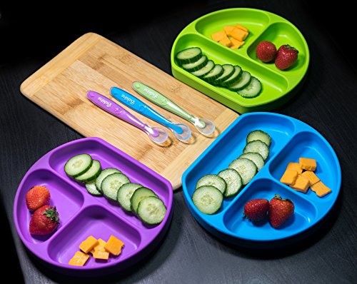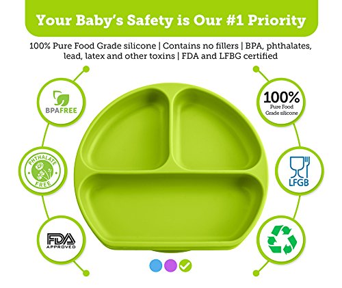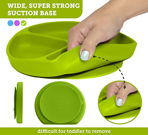 Babiere Silicone Toddler Plate – Powerful Suction Base Stays Put to Highchair – Divided Sections for Perfect Portions –BPA Free and Baby Safe – Spill Proof...