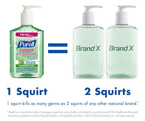 Kills the most germs - just one squirt of Purell Advanced Hand Sanitizer kills as many germs as 2 squirts of any other national brand