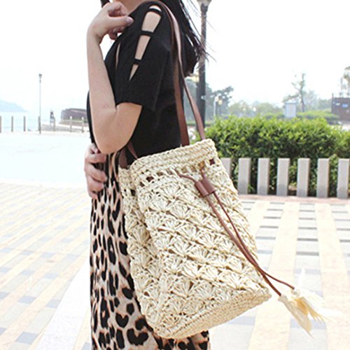Orfila Women Straw Shoulder Bags Tassel Drawstring Handbags Summer Holiday Beach Tote Bgas