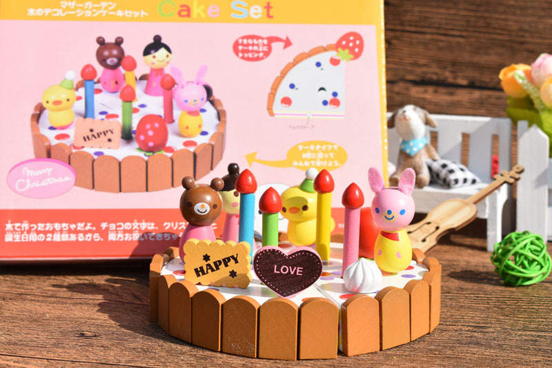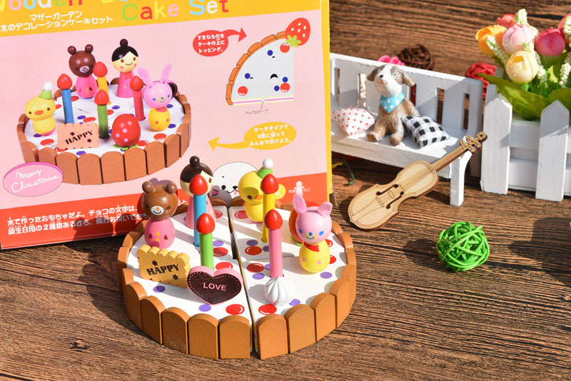 The toys include: cake X1 (can be divided into 4 small pieces), candle x4, cartoon stick x4, strawberry stick x1, butter stick x1, heart stick x1, biscuit stick x1.